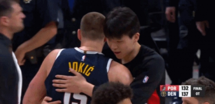 😁世纪拥抱~约基奇赛后找到了杨瀚森 一个爱的抱抱